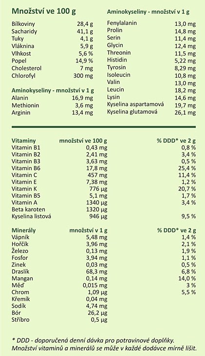 Složení zeleného ječmene: